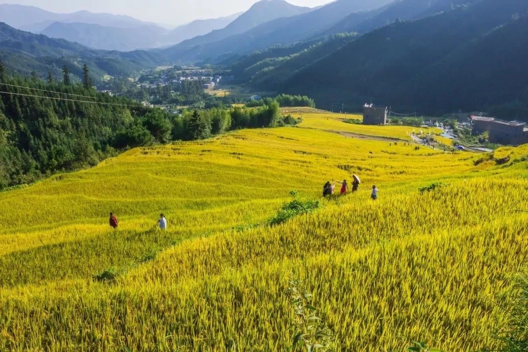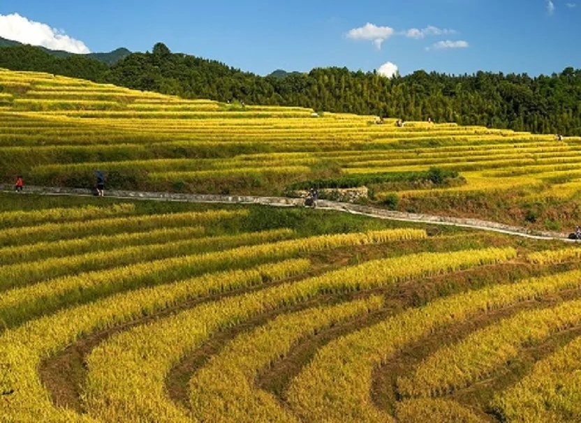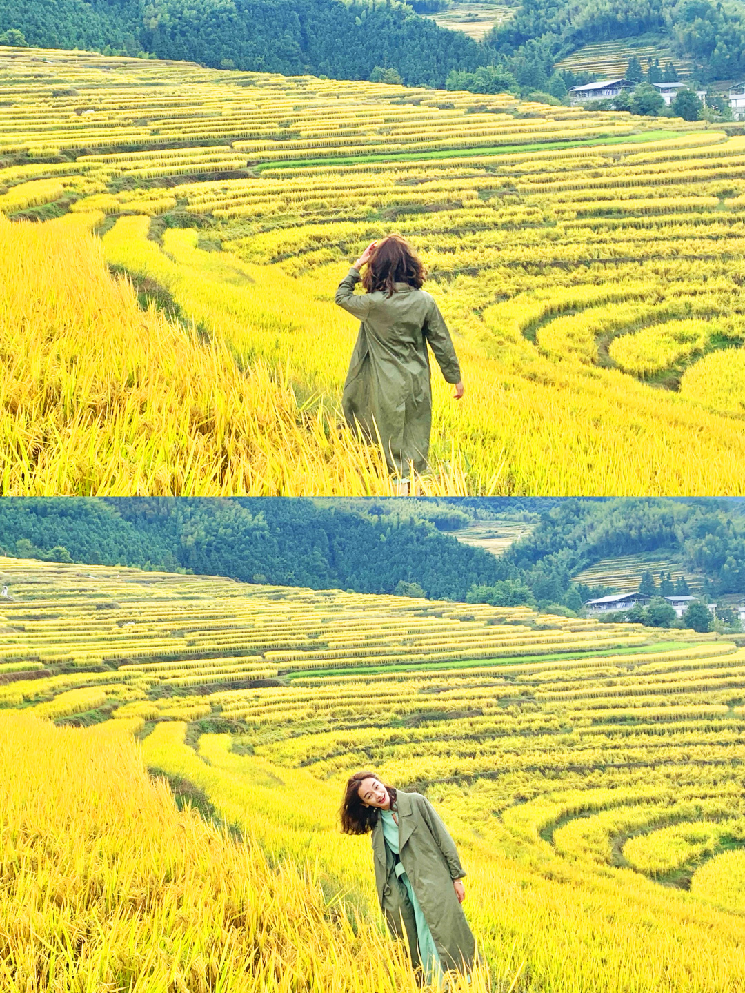 13:00 跟着领队沿乡间小路步行15分钟,漫步在金灿灿梯田间,眺看层层叠叠的梯田,也可自由活动,走走逛逛;