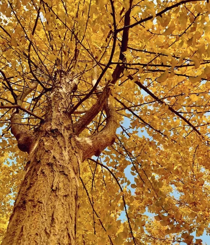 栈道沿山势起伏而走,给我们带来高低层次和野视体验,穿梭于银杏丛林中,如漫游于银杏金色海洋。