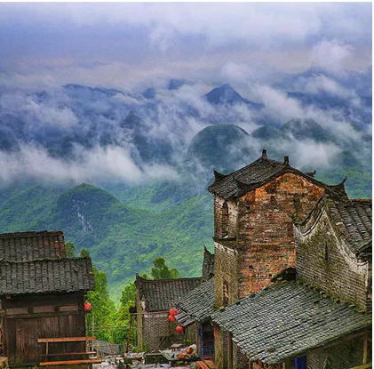 千年的油岭瑶寨四面环山,风光旖旎迷人