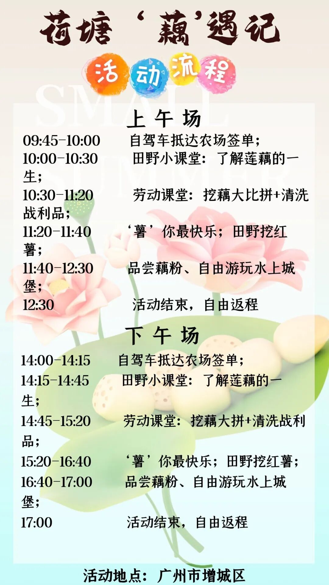 增加一成人/小孩加收100元/人,含1斤莲藕+1斤红薯、农场营位、藕粉;