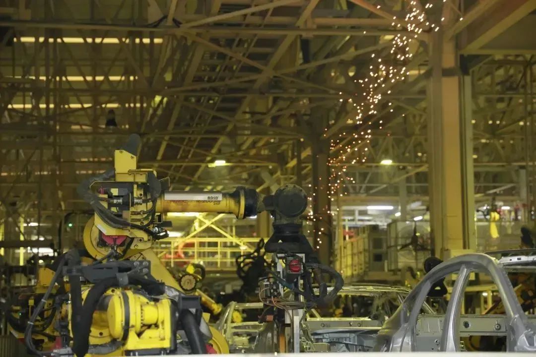 2012年1月正式投产,车间占地面积3.56万平方米,机器人371台,自动化率76.8%,在这里可以看到一辆车的“四门两盖”的焊装拼接,车体大约有3400个焊点。