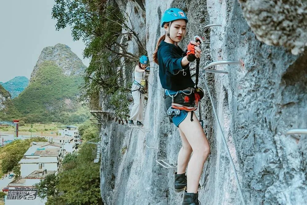 上午:喀斯特飞拉达挑战,喀斯特地貌下造成了奇绝陡峭的山峰。让挑战者在攀爬中,近距离观察山峰表面,感受喀斯特地形地貌的魅力,同时突破自我、挑战极限,收获勇敢与自信。