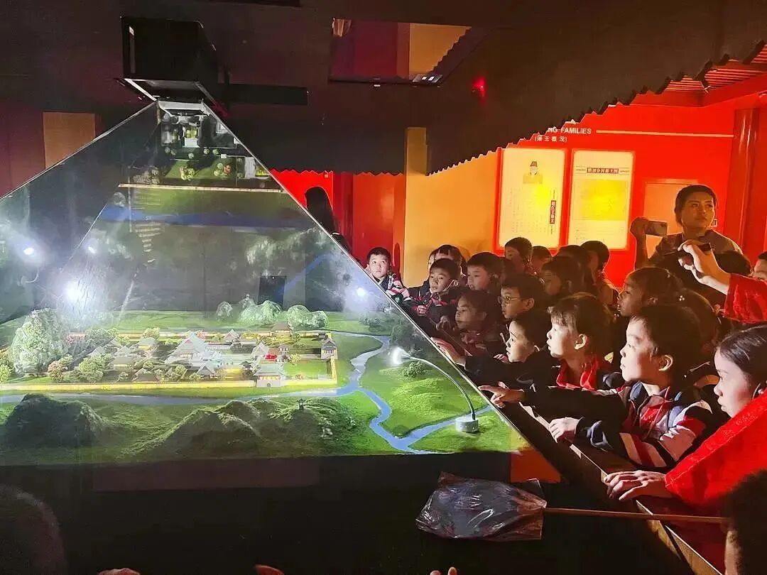 馆内通过激光宽屏与360度全息投影等高科技手段,向我们全方位的展示了靖江王府的前世今生,现代科技与古代文明在这里完美融合,把生硬的历史知识生动有趣的传递给孩子。