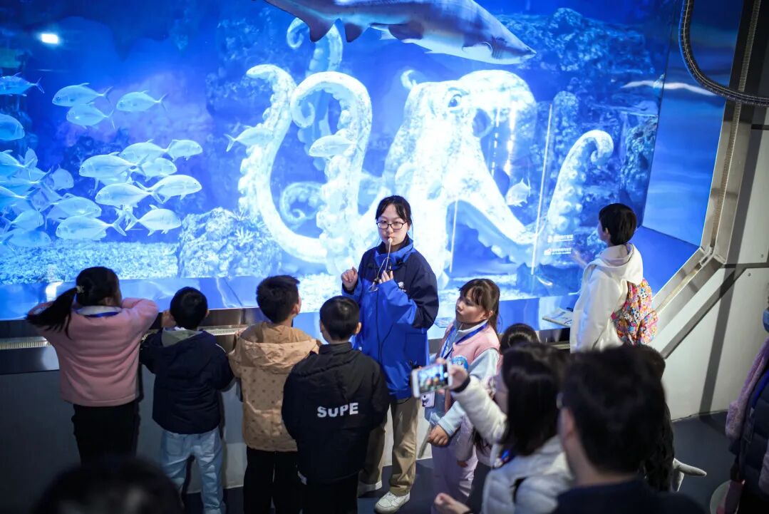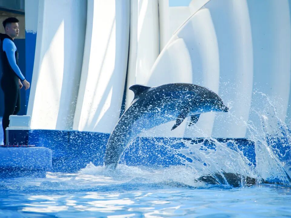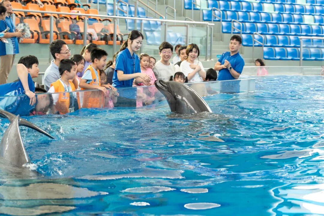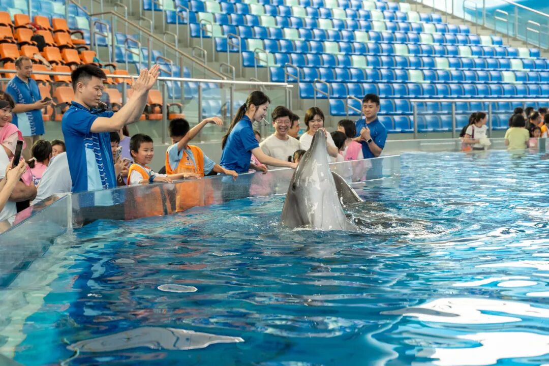 听海洋馆的保育员讲述海豚日常,了解海豚日常医疗训练及科学喂养知识。