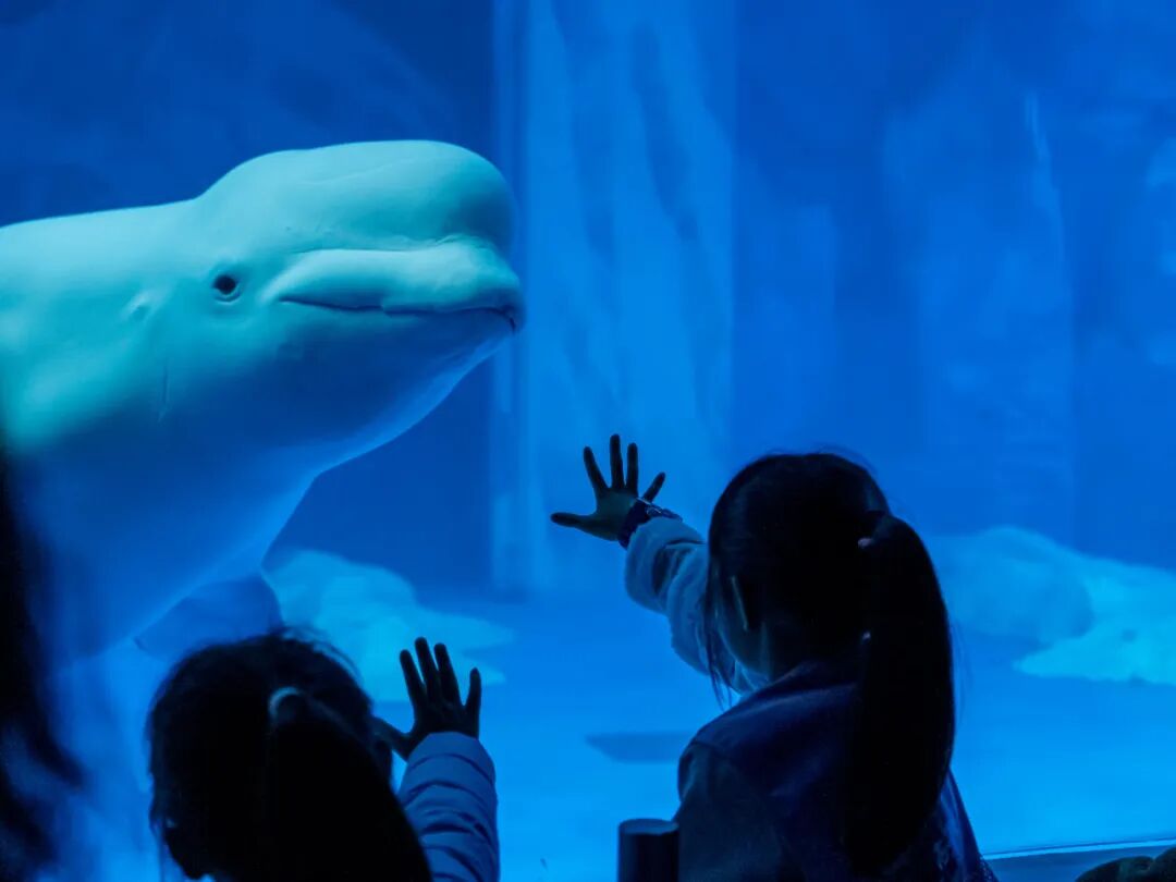 看看鲨鱼、白鲸、珊瑚区域鱼群