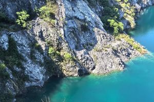 碧波荡漾的天然矿湖,湖水清澈湛蓝,在阳光照射下呈现出梦幻的"蓝眼泪"奇观。湖水清澈湛蓝,水质达到地表二类水标准,在阳光下呈现出不可思议的蓝绿色调,随着光线变化而变幻莫测。