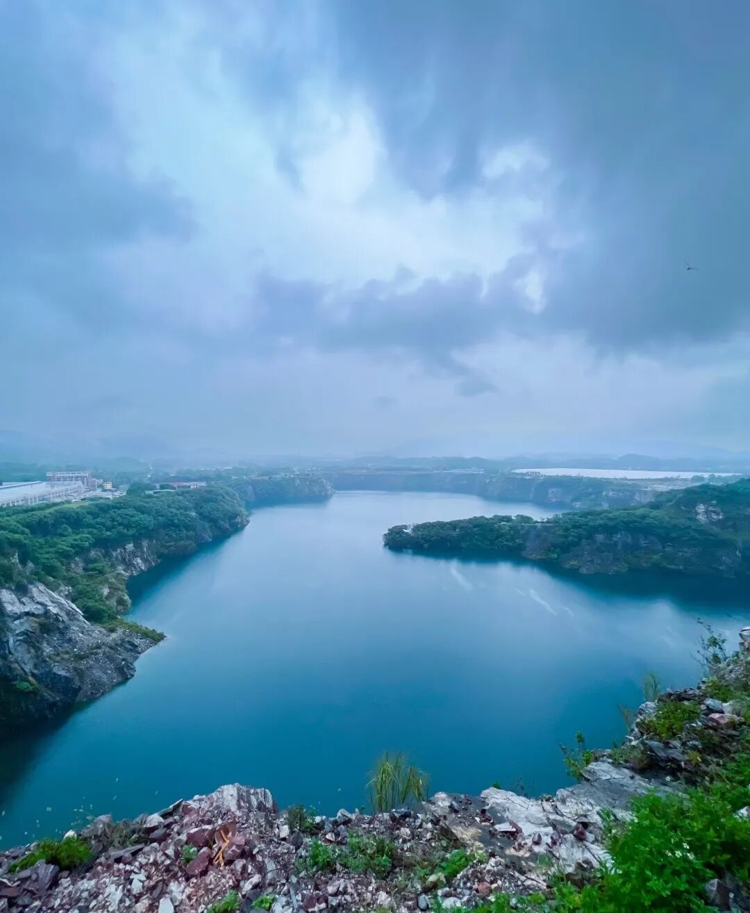 广东居然还有个这么小众又好看的地方!被青山绿水环绕~湖水蓝得像宝石,旧矿山改造的咖啡馆也太有感觉了,工业风+自然景完美碰撞!阳光洒在湖面上,湖水蓝得像巨大的蓝宝石,波光粼粼。