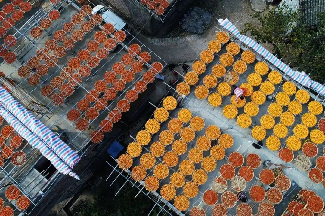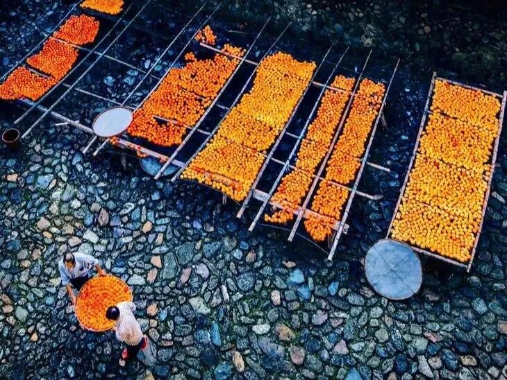 孩童的掌心里,都在晒柿,是漫山遍野的红。