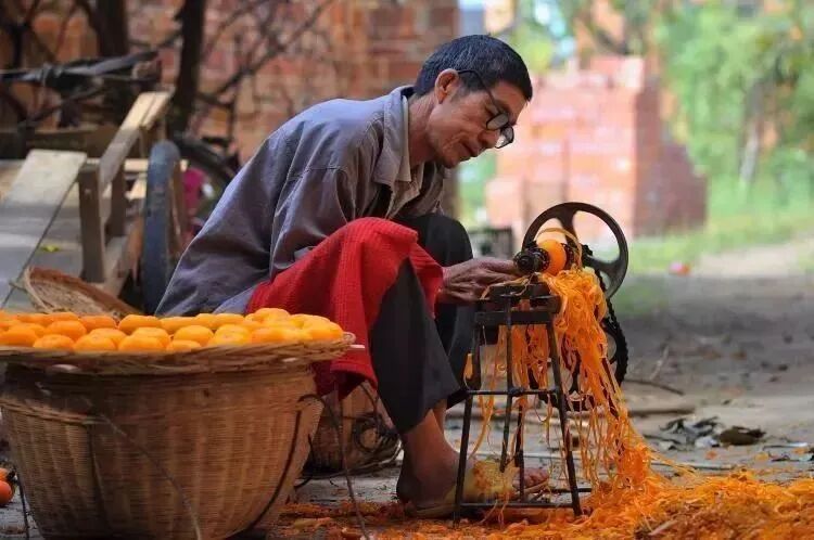 捣鼓着手中的机器,剥出柿子皮晒干成柿子饼