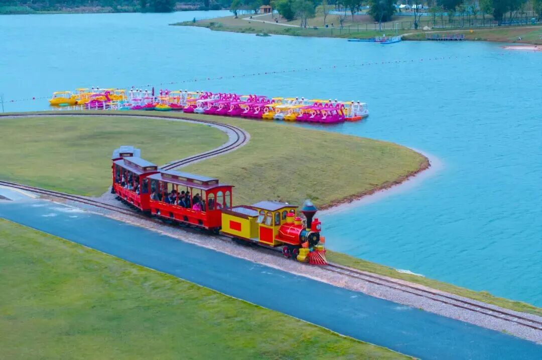 徒步见证成千上万株三角梅如瀑布般倾泻的壮丽景象。绝对是拍照打卡的绝佳背景板。我们的起沿着马岭湖畔的栈道漫步,看水光山色与繁花相映成趣。