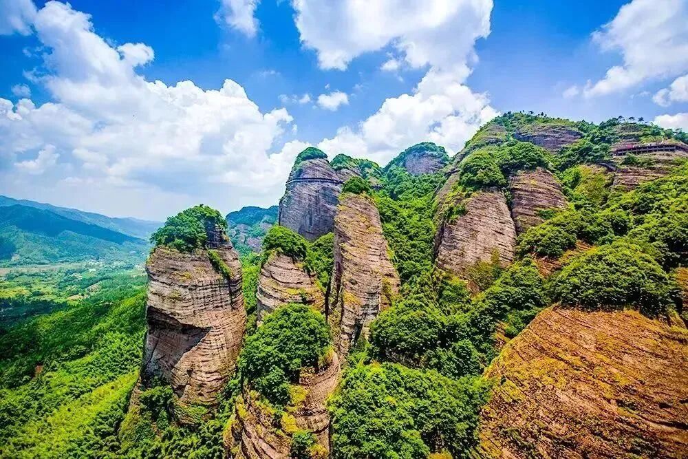 13:30 游览素有“江西南大门”之称的小武当山,九十九座奇峰平地突兀而起,绵十数公里,犹如一幅美妙的画卷,沿105国道徐徐展开。论风光龙南南武当山比起湖北武当山毫不逊色,为典型的丹霞地貌。