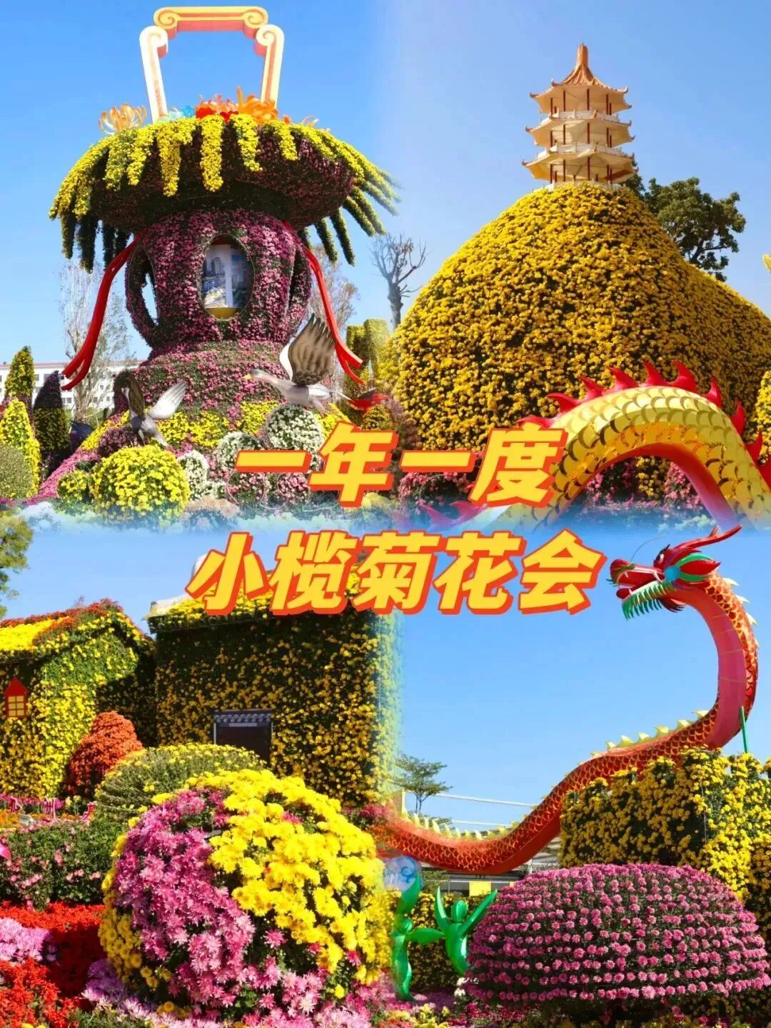 09:45 到达【中山小榄菊花展】,以“潮起湾区 花香菊城”为主题的 2025 年中国•小榄菊花会(于 2025 年 11 月 28 至 12 月 15 日举办)大型规模菊花会 ,主展场面积约 350 亩(其中水面 50 亩),共展出主题菊艺造景 28 组、花境 15 组、菊花品种 1000 多种。设置八大展区(菊艺造景区、名菊荟 萃区、花海区、文艺展演区、文化展览区、美食区、创意集市区、休闲开放区等) ,将小榄传统菊花文化和现 代美学深度融合,集城市特色、非遗文化、生肖元素、和美生活与菊文化于一体, 全面、立体地展示“中国菊花文化艺术之乡”的迷人风采(午餐可以享用自备的干粮,菊花展里也有各类美食区)