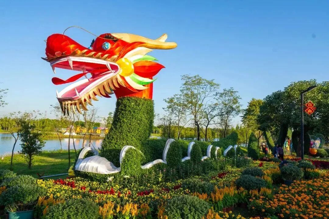 亮点一 大型菊艺造景,188米巨型菊花长龙造型,寓意小榄经济社会龙腾飞跃、繁荣昌盛。造景正申报上海大世界基尼斯花卉组成的最长龙造型纪录。