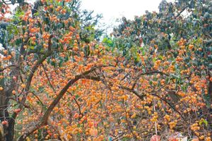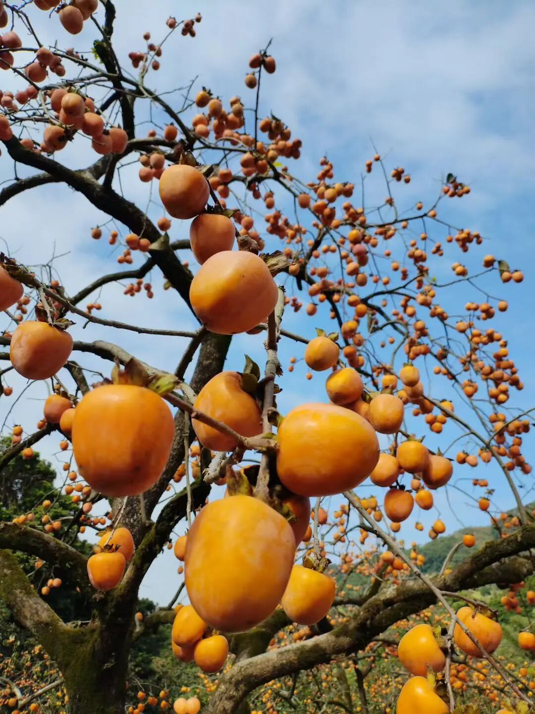 一树树果实累累的柿子