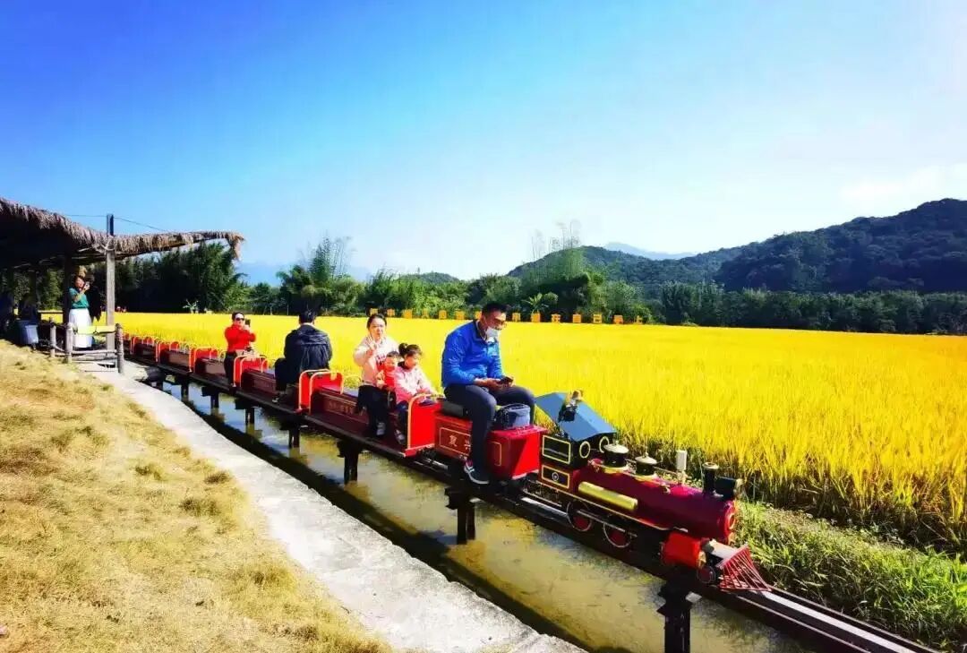 10:00 左右到达【从化米埗小镇】,欣赏金黄的稻田,穿梭其中的小火车,风拂过稻田,沙沙作响,静静的坐在傍边,仿佛自己就是宫崎骏电影里那些追梦闪光的人;