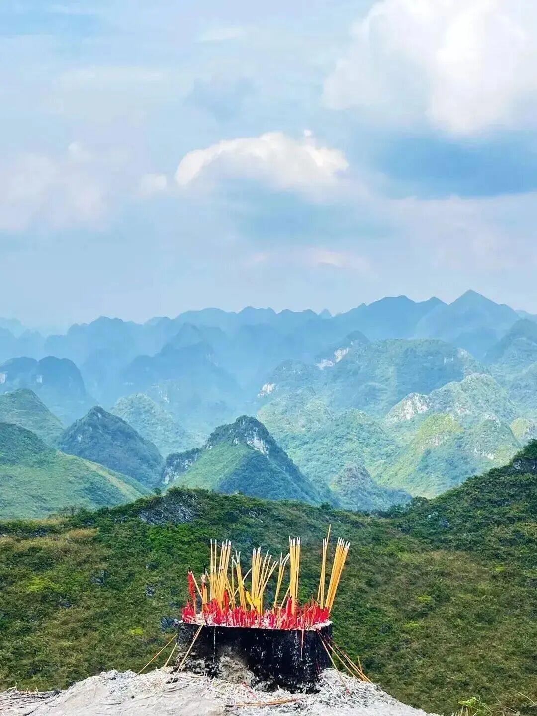 喀斯特峰丛地貌:靘雾山及周边区域拥有数千座喀斯特峰丛,山峰绵延不断,错落有致,形成壮观的峰林景观,有着“万峰之王”的美誉,从山顶望去,仿佛千军万马,震撼无比