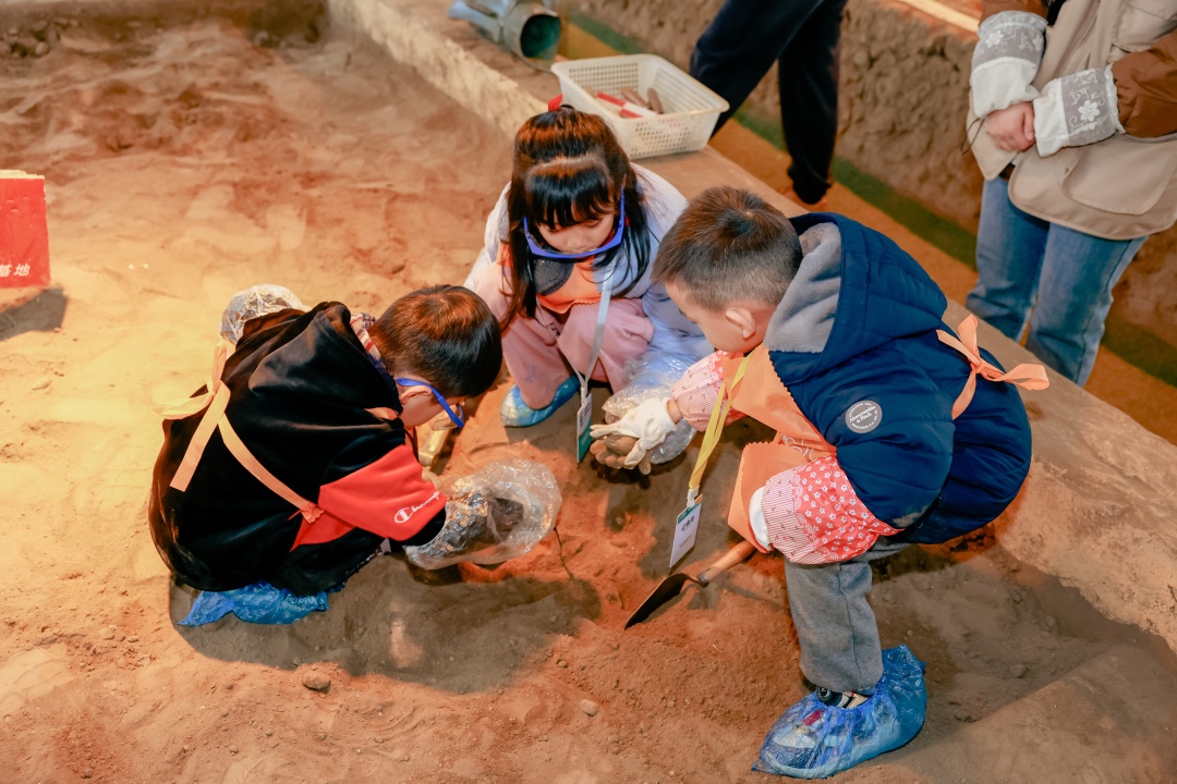 【模拟考古——破解方寸间的文明密码】在这里,你们将成为“小小考古家”,在真实复原的考古坑中,亲手操作手铲、刷子等专业工具,体验考古发掘。这是一场考验耐心与细心的冒险,当“国宝”从你们手中破土而出时,不仅能收获发现的喜悦,更能亲身感受中华文明的博大精深,在心中种下一颗守护国宝、探索历史的种子