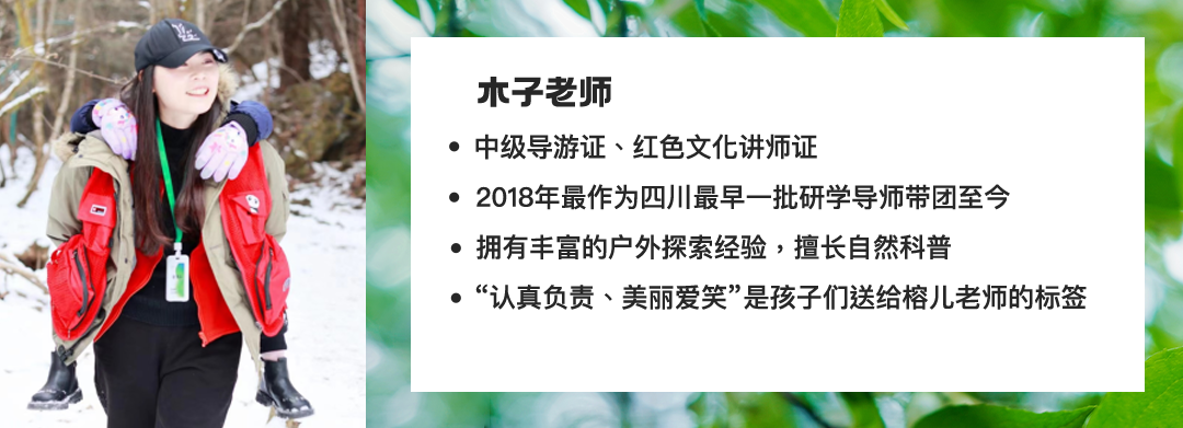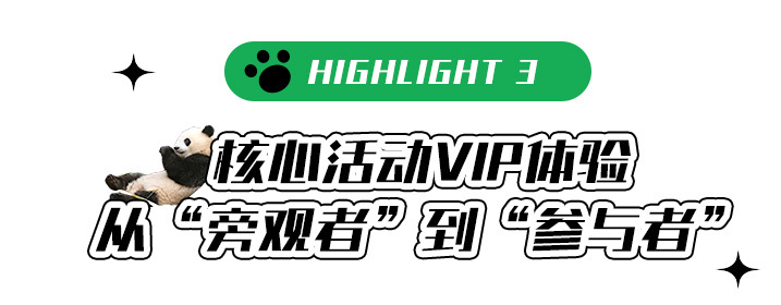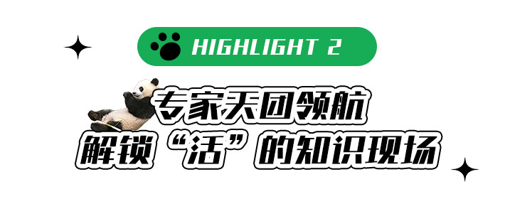 【国宝守护——化身小小“保育员”】从大熊猫的行为习性观察到深入大熊猫国家保护区,并做一名合格的国宝“铲屎官”,走进基地非游客区域进行义工体验。帮大熊猫搬运竹子、在饲养员带领下观看饲养员喂食熊猫、行为观察分析、“制作窝窝头”等等,争取当个被大熊猫认可的一日“保育员”