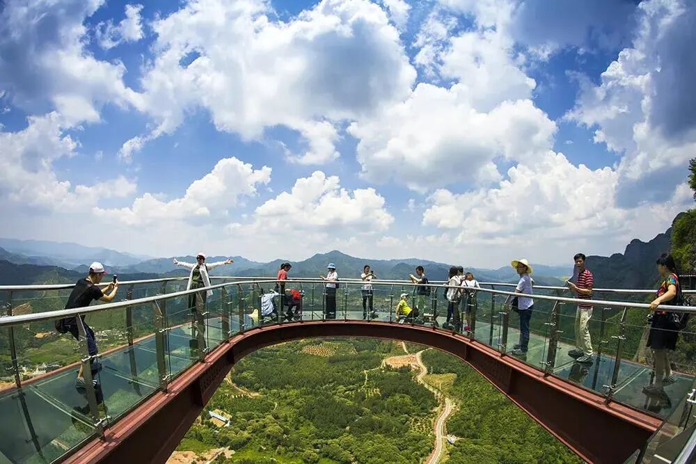 花涧玻璃天桥:雄跨两山翠绿之间的玻璃天桥,宛如雨后彩虹,行走在透明的玻璃天桥之上美景尽收眼底,桥底的幽寒山谷、悬崖峭壁刺激到令人尖叫~