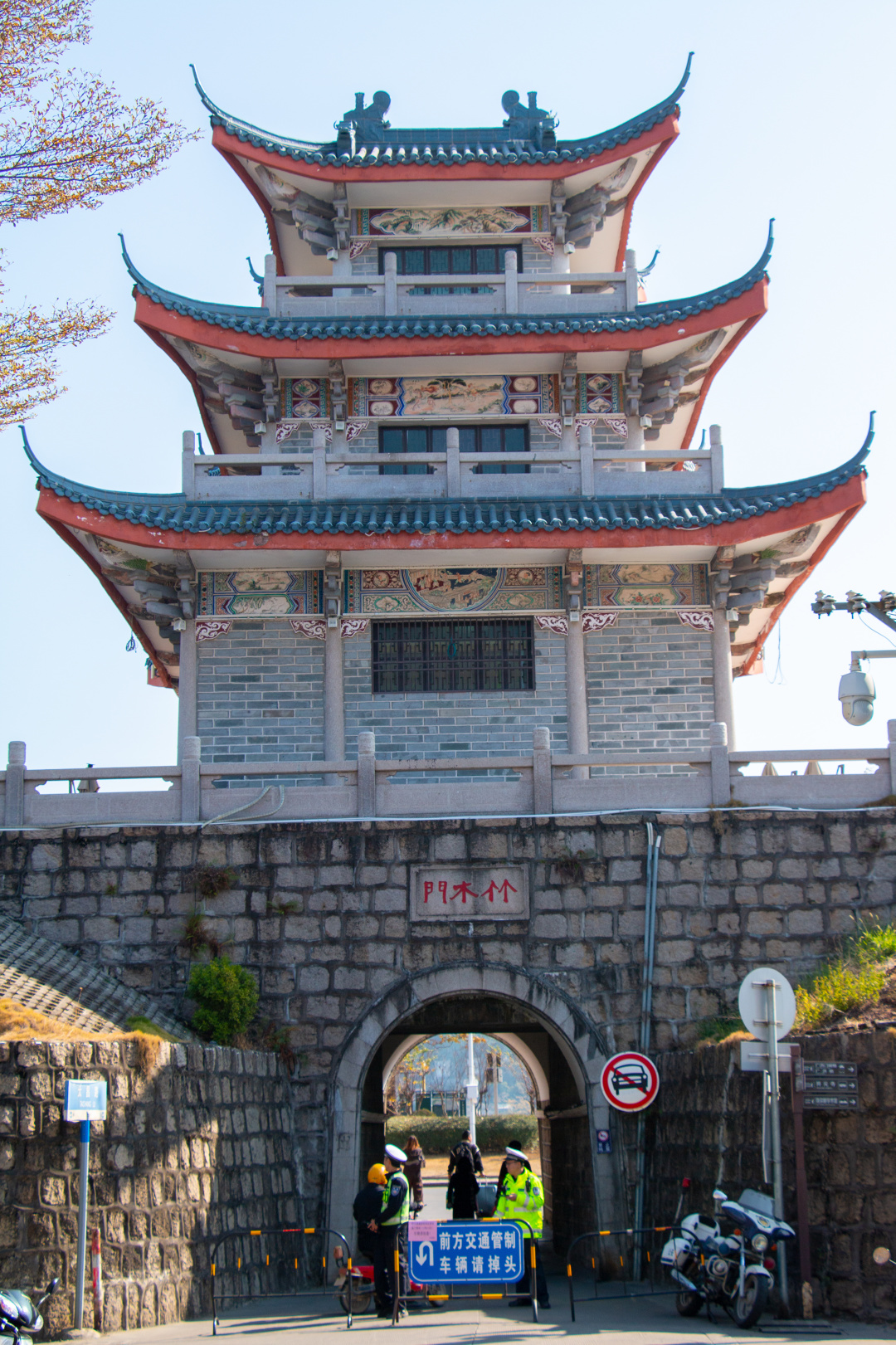 广济门城楼原称“广济楼”,也称“韩江楼”,民间俗称“东门楼”,列潮州城七城楼之首,襟江控岳,护邑镇桥,为名城标志之一。 广济门城楼是一座宫殿式三层歇山顶阁楼楼置于高大厚实的台基上,拱门中开,面阔七间,进深五间,前后面为木石柱相衔接支撑,并跨出城墙外,成为骑楼。
