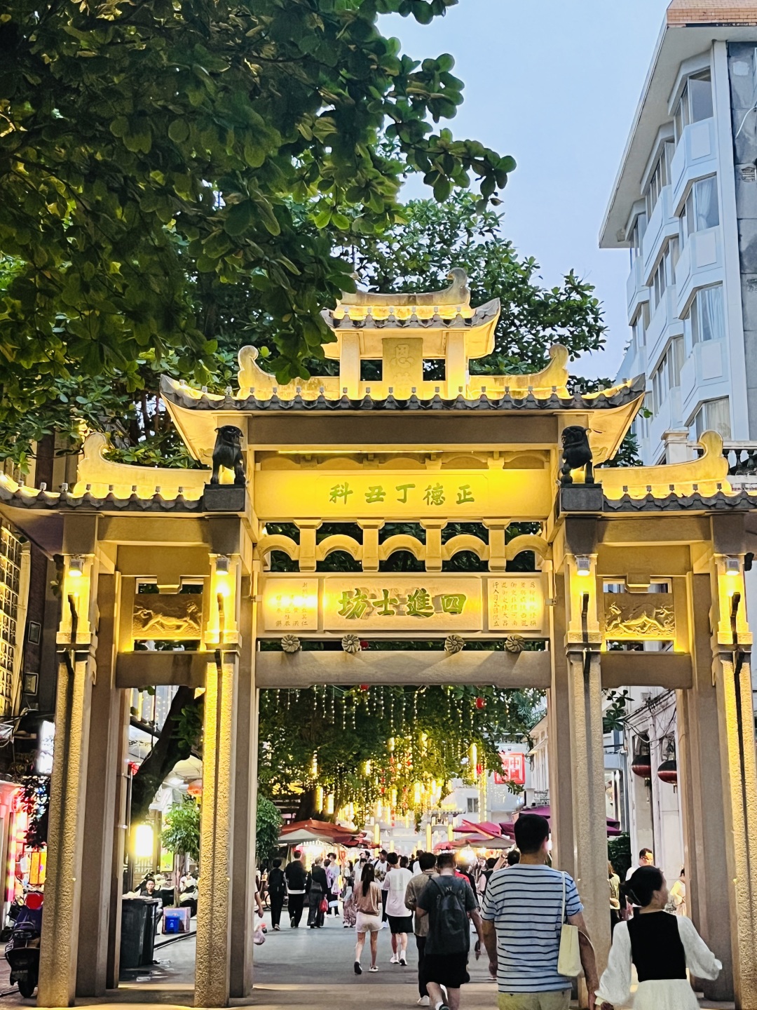 潮州牌坊街是全国独一无二的文化景观,总长约2000米的街道上,矗立了23座中式明清石牌坊,周边连接起51条古街巷,街道两旁极具南洋风格的骑楼交相辉映,形成中西合璧的城市韵味,成为“潮州新八景”之“坊街亭韵”。
