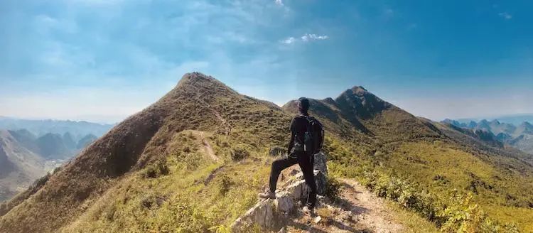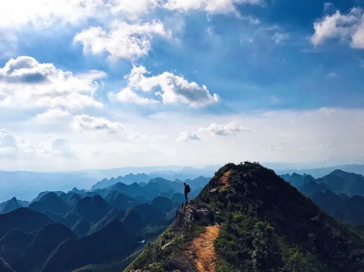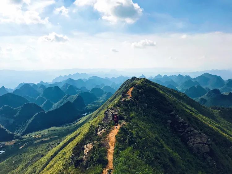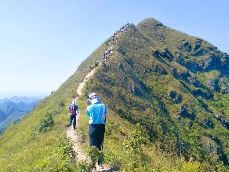 13:30 继续出发,徒步前往精华路段,一路翻山越岭到达风景尤美的山脊路段,行走在刀锋般的山脊之上。