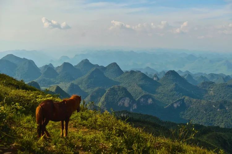 虽然莫六公顶的草坡不如江西武功山那般铺天盖地连绵不绝。但这里却拥有武功山所没有的景观,那就是周边拥有广东罕见的峰丛地貌,登高望远,只见数不清的峰丛拔地而起,就像大海波涛般壮美。