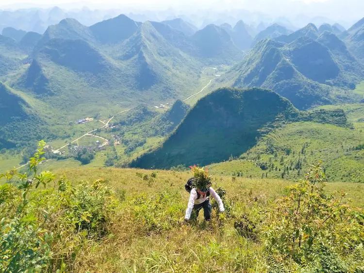 15:00 到达山顶,在这里欣赏美峰林全景,这里也是拍照大打卡点之一。稍作休息我们开始下山,一路沿着小路和村民修建的台阶下来。