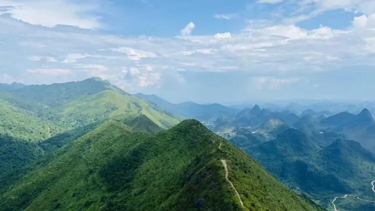 莫六公顶位于阳山县南缘,与英德市和清新区毗邻,距离广州市仅2小时车程。莫六公为旗山余脉,山体本身其貌不扬,但行走于它长长的山脊线上,可以俯瞰阳山杜步和清新白湾境内上千座喀斯特峰丛!