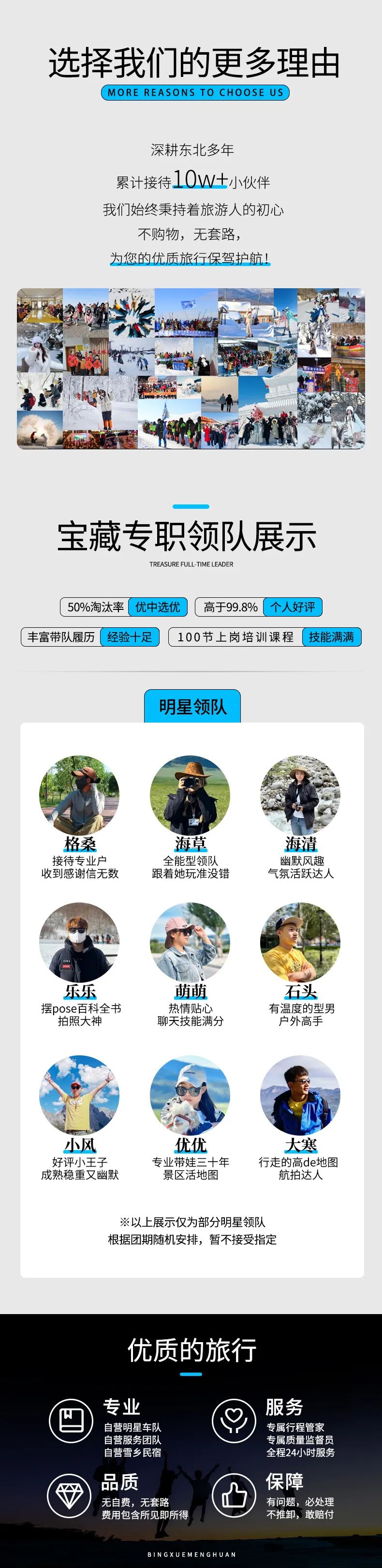 14、为了记录您在旅途中的美好瞬间,服务人员可能会为您以及同行人员拍摄一些照片,这些照片可能会被选中用于本产品活动分享、产品宣传、新媒体运营等,若您不同意授权我司使用的,请您在报名时备注。