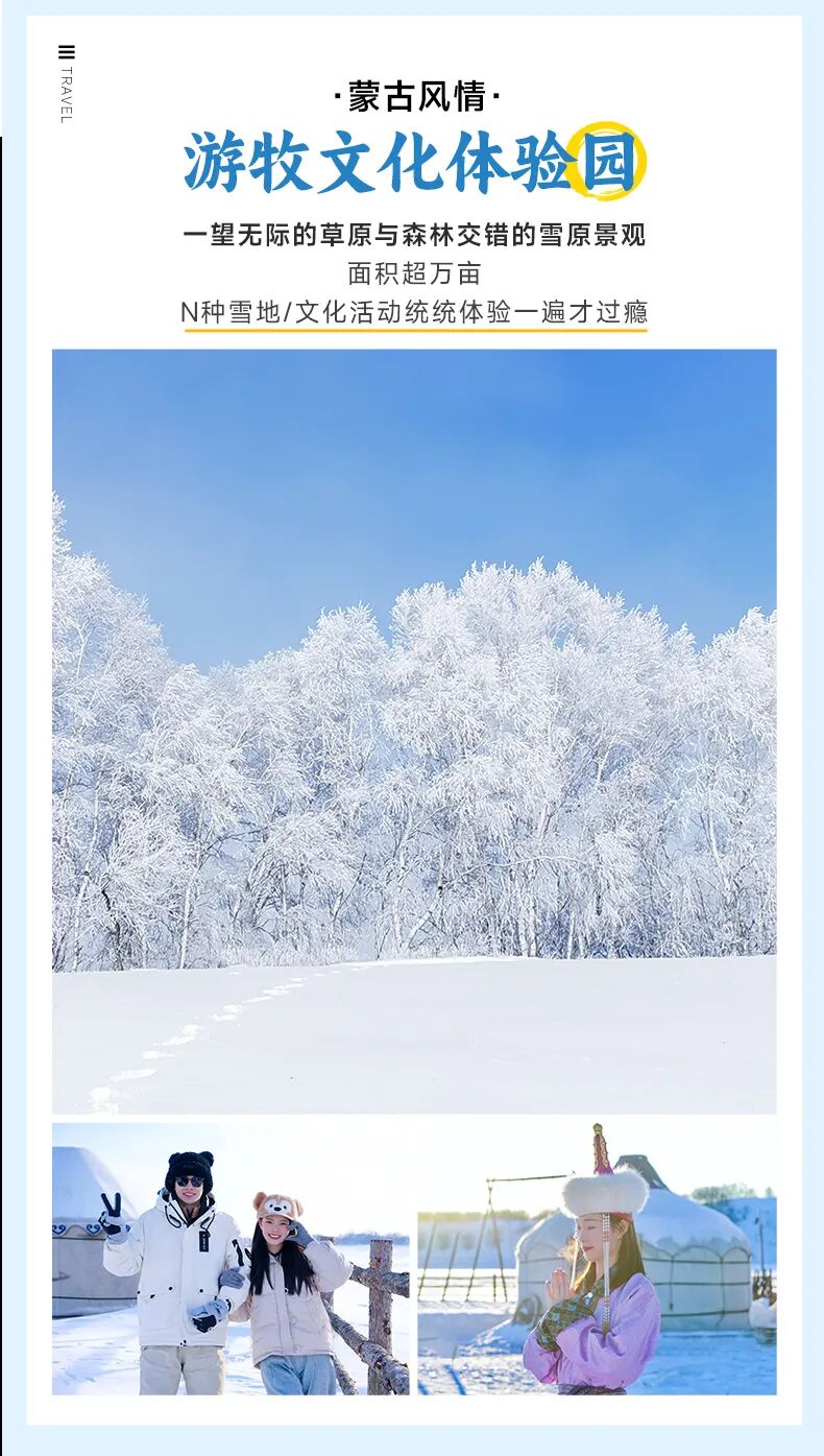 7、体验:游牧文化体验园雪地勒勒车等娱乐体验、高山滑雪圈、冰上串串烧等
