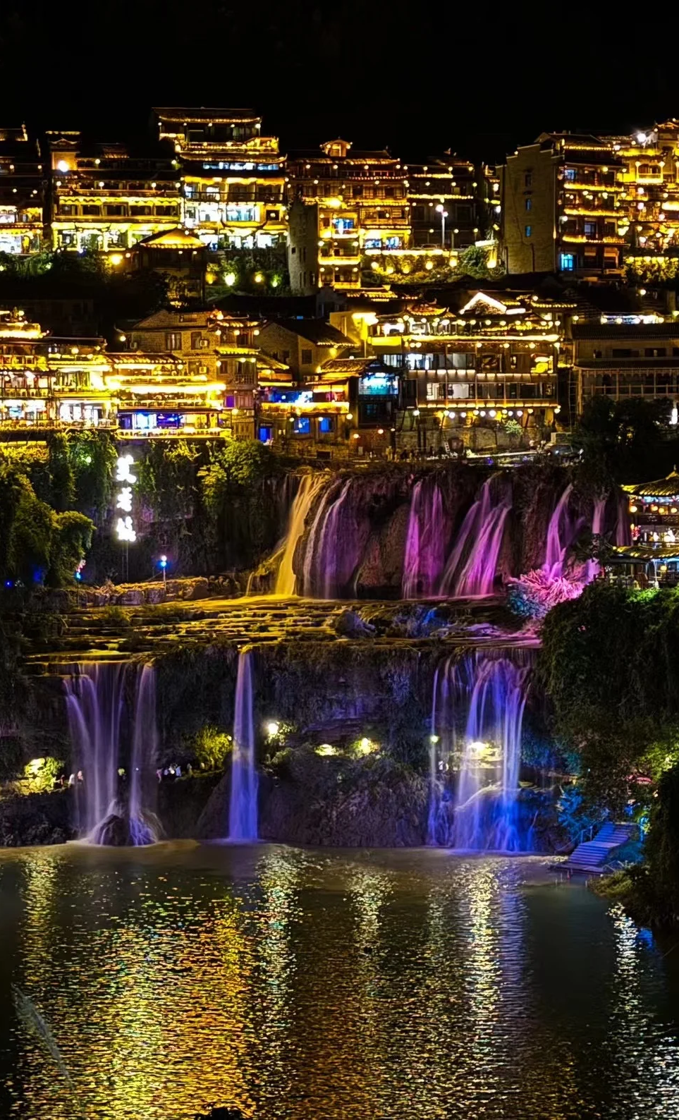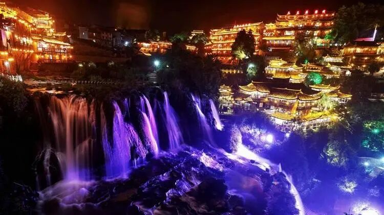 夕阳收起最后一道霞光的时候,盏盏街灯与霓虹灯在芙蓉古镇的夜空渐次亮起,暖冷、明暗渲染,勾勒出沱江与山城的轮廓。绚烂的光影中山、水、人、桥、吊脚楼……动静相融、相衬,层次分明、色彩斑斓,整座古城美轮美奂,尽显古镇的迷人。徜徉古城,令人如在画中游。
