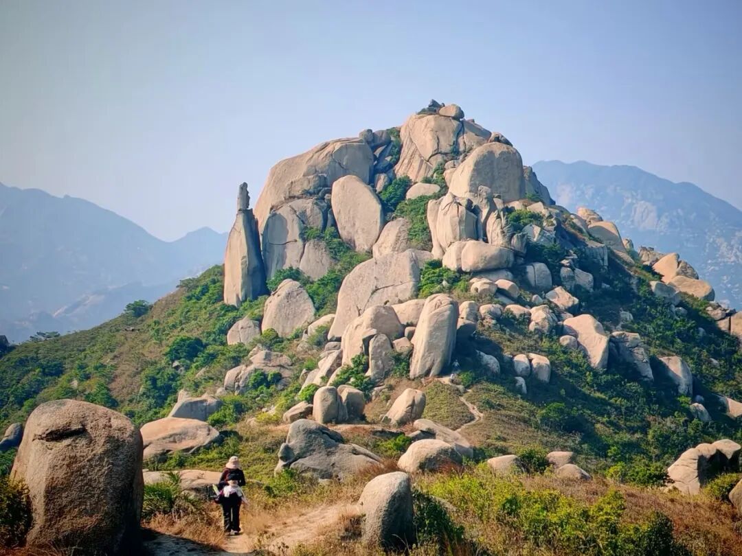 没想到在江门台山也有这样独特的巨石奇貌!像是《西西弗神话》中推石上山的哲理神话现场,一面是裸石如雷的山体,一面是蓝色幻景的大海。真的有被震撼到!