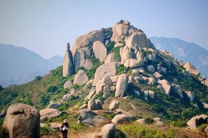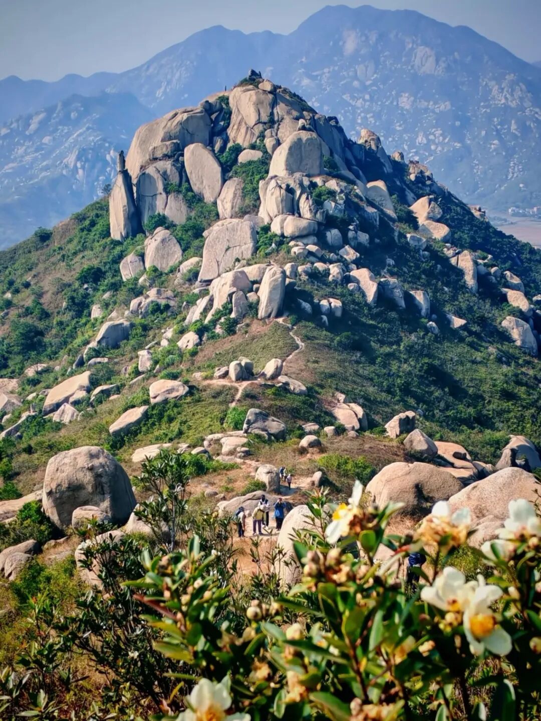 13:00 吃饱喝足,继续出发登山,一路近看奇石乱布,远观无边大海;