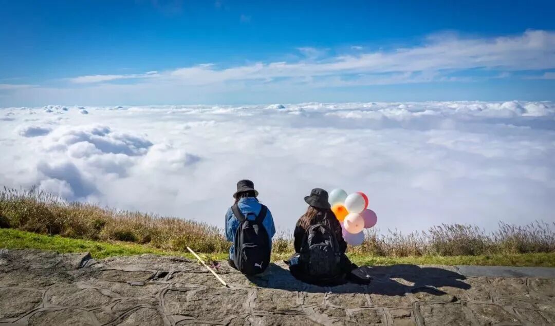 坐缆车直达半山腰,再慢悠悠爬2小时就能登顶!沿途有补给站可以买烤肠和冰可乐,登顶后拍“云端漫步”大片!