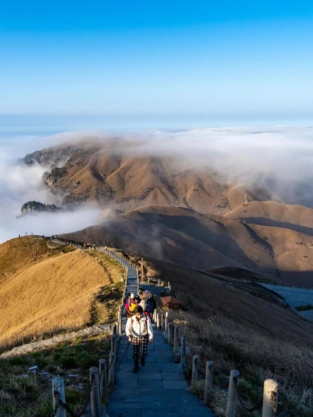 曾经有一句话这样形容它:如果你爱一个人,就带她来武功山,那缥缈清新宛如仙境般的风光,会让她迷失在你的怀里。如果你恨一个人,也带她来武功山,那在云中连绵起伏的山路,会让她体会到什么叫做绝望。
