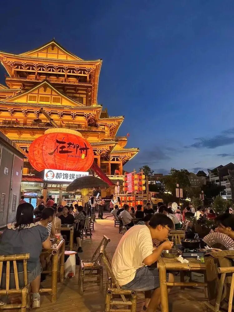 晚上,自由活动,约伴到五星美食街、胜利烧烤城寻找当地特色美食。到达柳州后,第一餐必然得嗦一碗柳州当地的螺蛳粉~除了螺蛳粉,这里还有汤粉、干捞粉、炒螺蛳粉、猪脚粉等各式各样的米粉以及牛杂、鸭脚煲、卤菜等美食~