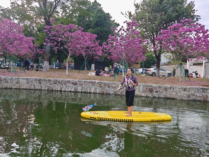 谁说公园只能散步?顺德民乐公园藏着超解压的水上乐趣 ——桨板体验等你来挑战!这里有专业装备加持,单人板、双人板甚至4人龙板、8人巴士板任选,6 岁以上就能独立上板,亲子同游还能解锁宠物亲子板模式。