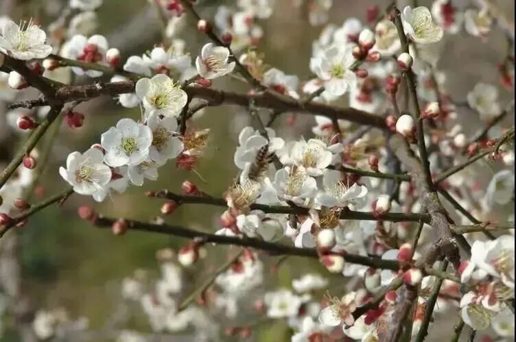 如今,这漫山遍野的梅树已渐入佳境。从远处看,梅花似一片雪海,风吹飘香。从近处看,花儿争艳,蜂儿翻飞,如诗如画,非常适合到这里写生、摄影甚至拍婚纱照。