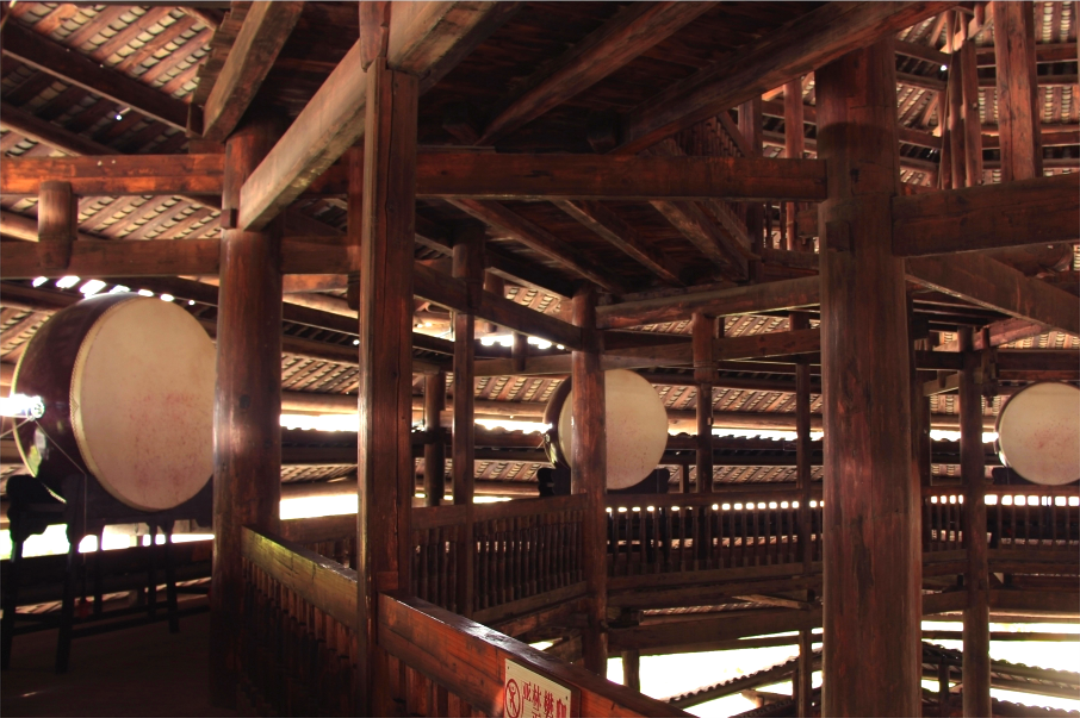 智团鼓楼:九重檐八角歇山顶,高14.9米,占地面积77.3平方米。