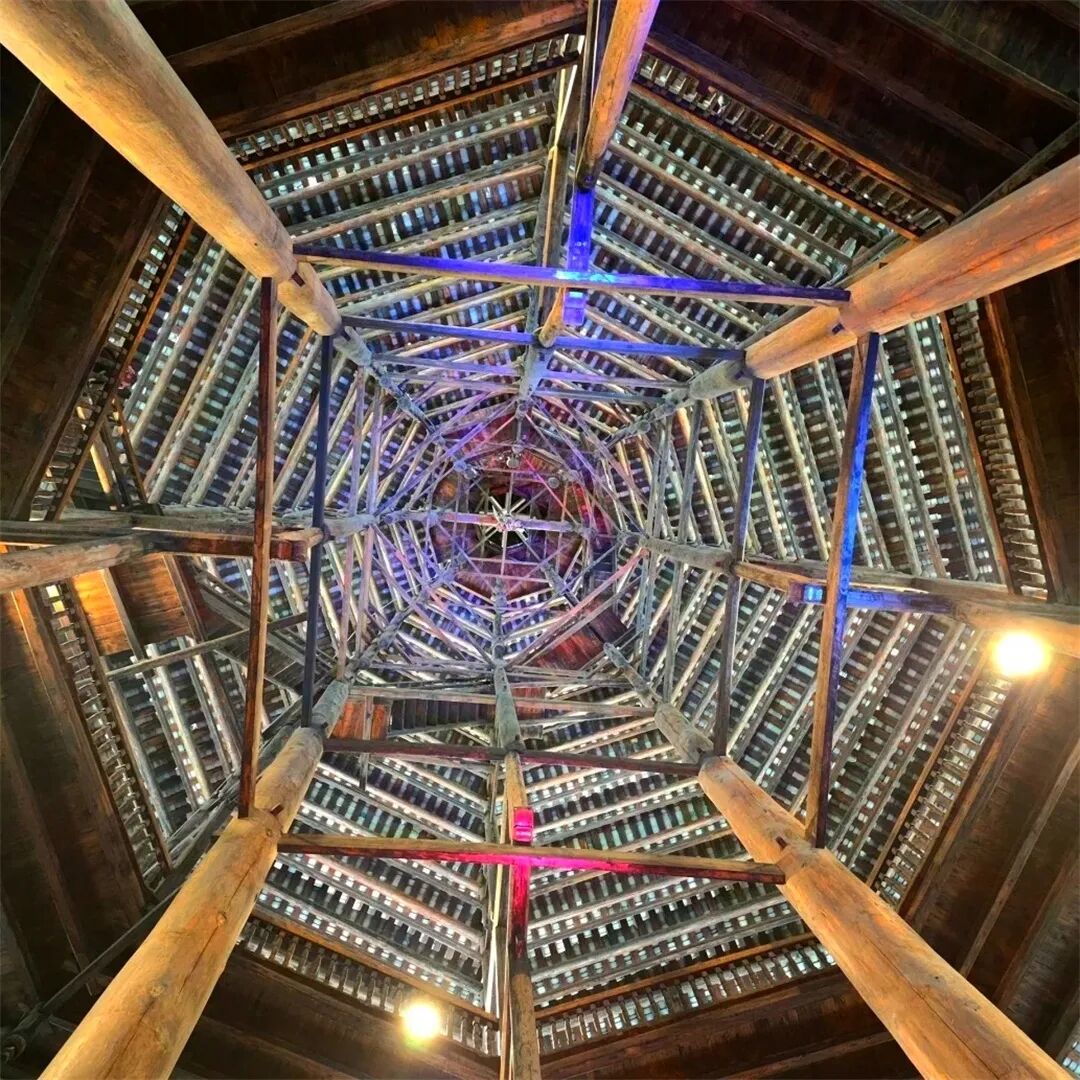 礼团鼓楼:十三重檐八角攒尖顶,高23.1米,占地面积70.3平方米。