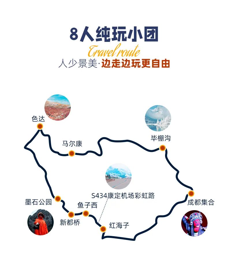 深秋+初冬限定,共20期,每周五成都集合,周六出发,次周二成都结束,节假日略有调整。
