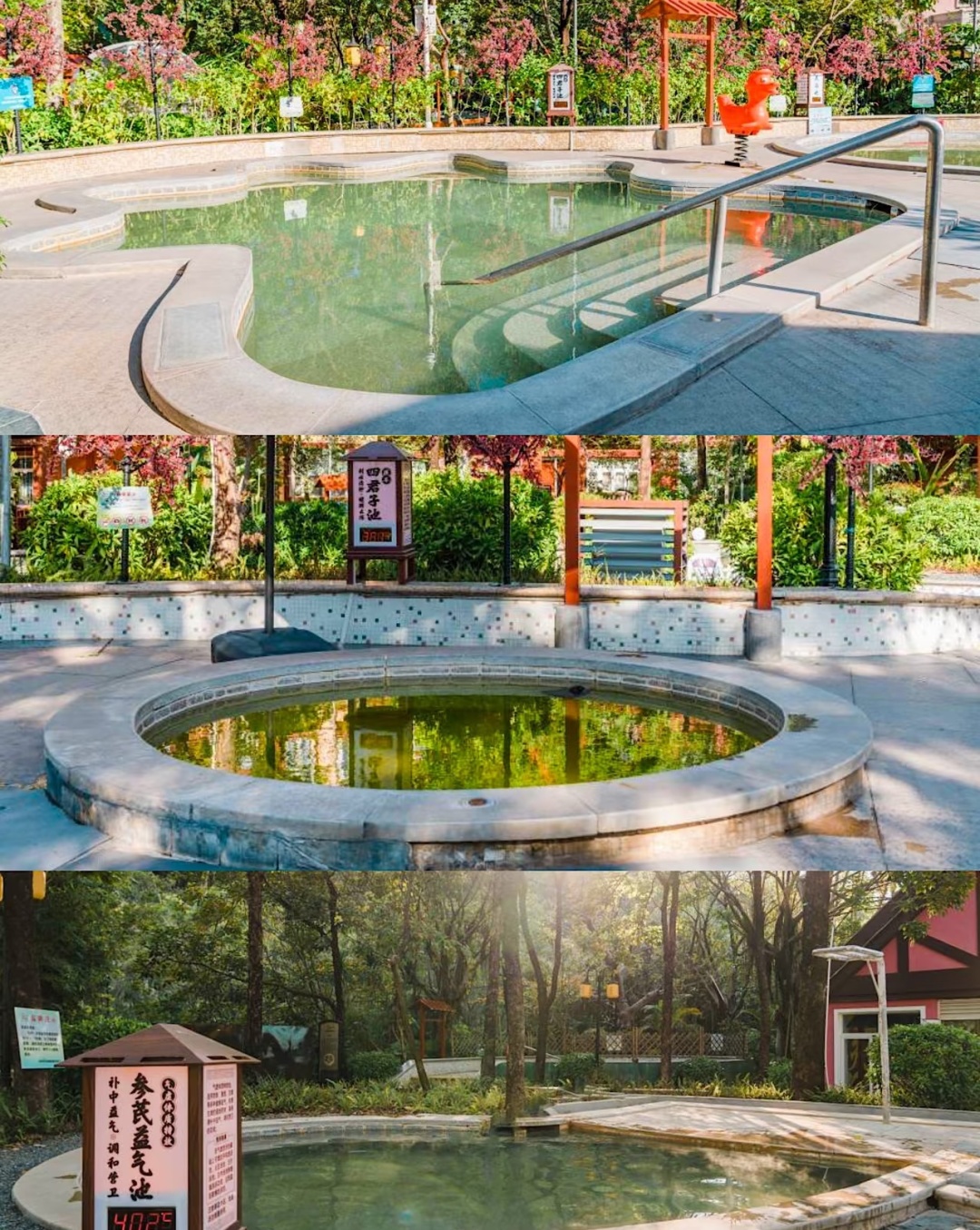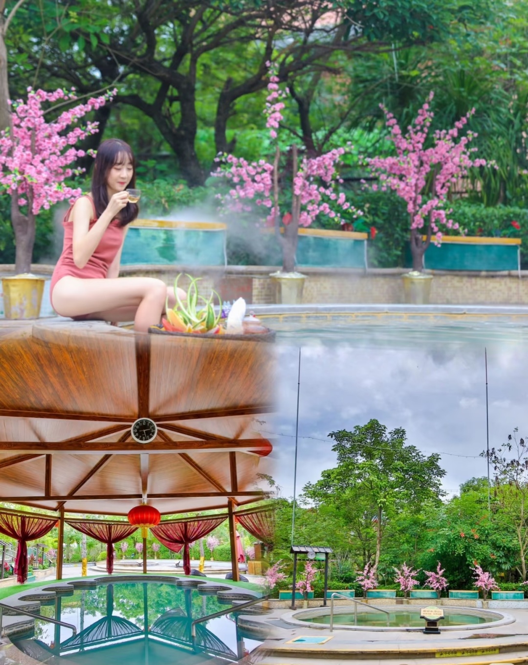 园国医国药温泉占地3万㎡,各式温泉池62个,根据“金木水火土”五行学说规划布局。