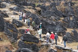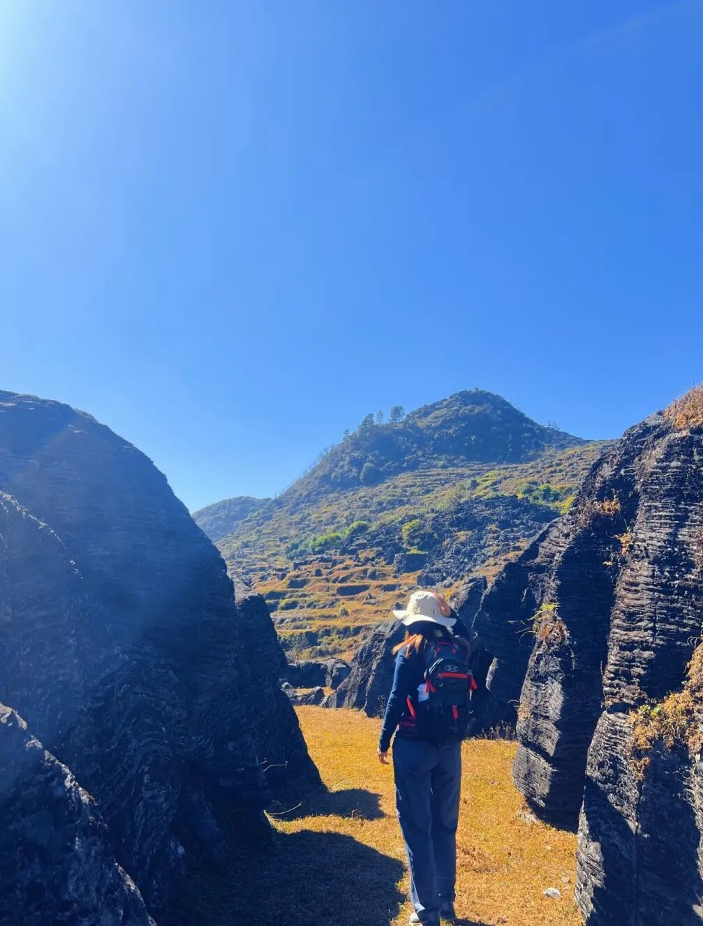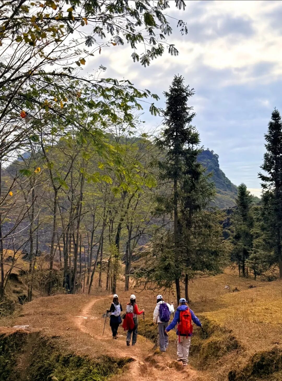 10:30 到达徒步起点热身,开始徒步走环线(全程大约8公里)。梅子坪古道主要部分都隐藏在人迹罕至的喀斯特群山中;