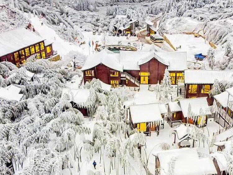这座山的平均海拔1200米,可坐接驳车上山,也可以沿木阶梯徒步上山,共520阶,爬上去大概要1小时左右。你可以一边爬梯一边欣赏山中美丽的雾凇冰挂风景。