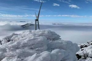 云冰山出现云海、雾凇景观,蔚为壮观