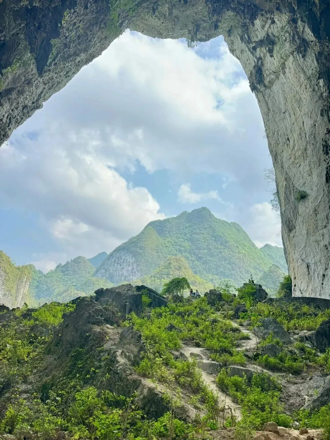 沿着步道往上会经过飞龙穿洞,洞长193米,宽44-62米,高54-100米,洞顶上石钟乳发育,造型奇异,似龙爪倒吊。