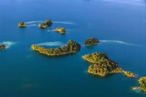 三百八十多个岛屿如翡翠散落湖中,近处的苍翠欲滴,渐远的化作青黛色剪影,最远的只剩水墨般的淡痕。游船划开金色水路,岛与岛之间形成光的回廊。