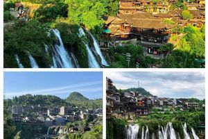 ①拥有两千多年历史的古镇,因宏伟瀑布穿梭其中,有称“挂在瀑布上的千年古镇”