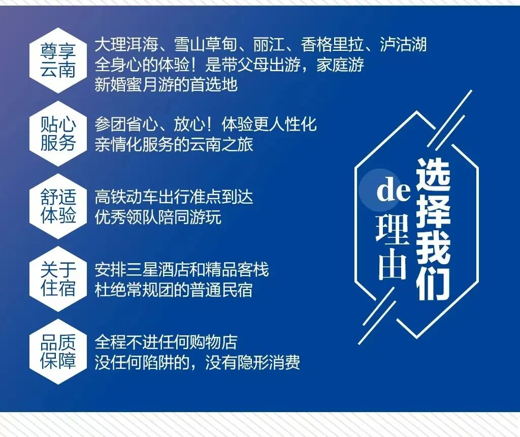 6.保险:旅行社为游客购买云南旅游组合保险(旅行社责任险),此行程赠送旅游意外险50万保额;